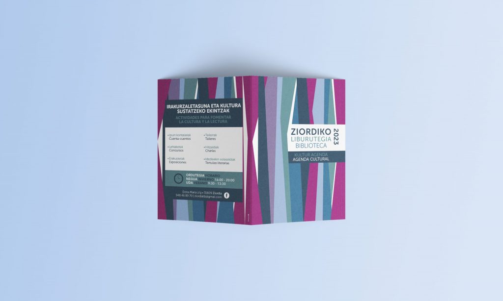DÍPTICO DE LA BIBLIOTECA DE ZIORDIA 2023. Biblioteca de Ziordia Folleto de la Biblioteca de Ziordia para dar a conocer los eventos que habría de enero a marzo de 2023. Díptico A5
